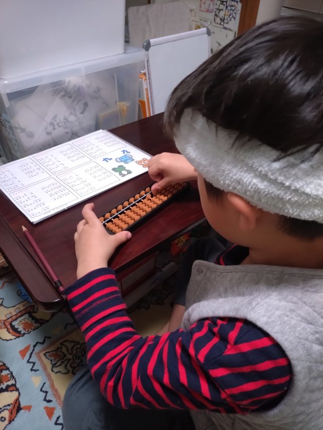 最近息子がそろばんを習い始めました。毎日、宿題のプリントを頑張っています